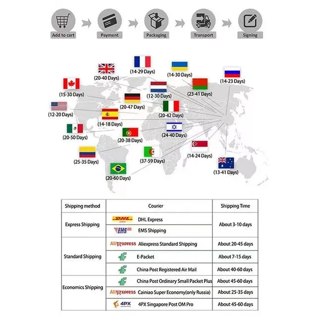2. Il pacco verrà spedito gratuitamente tramite ePacket e China Post Air Mail. Se desideri la consegna espressa, contattaci.